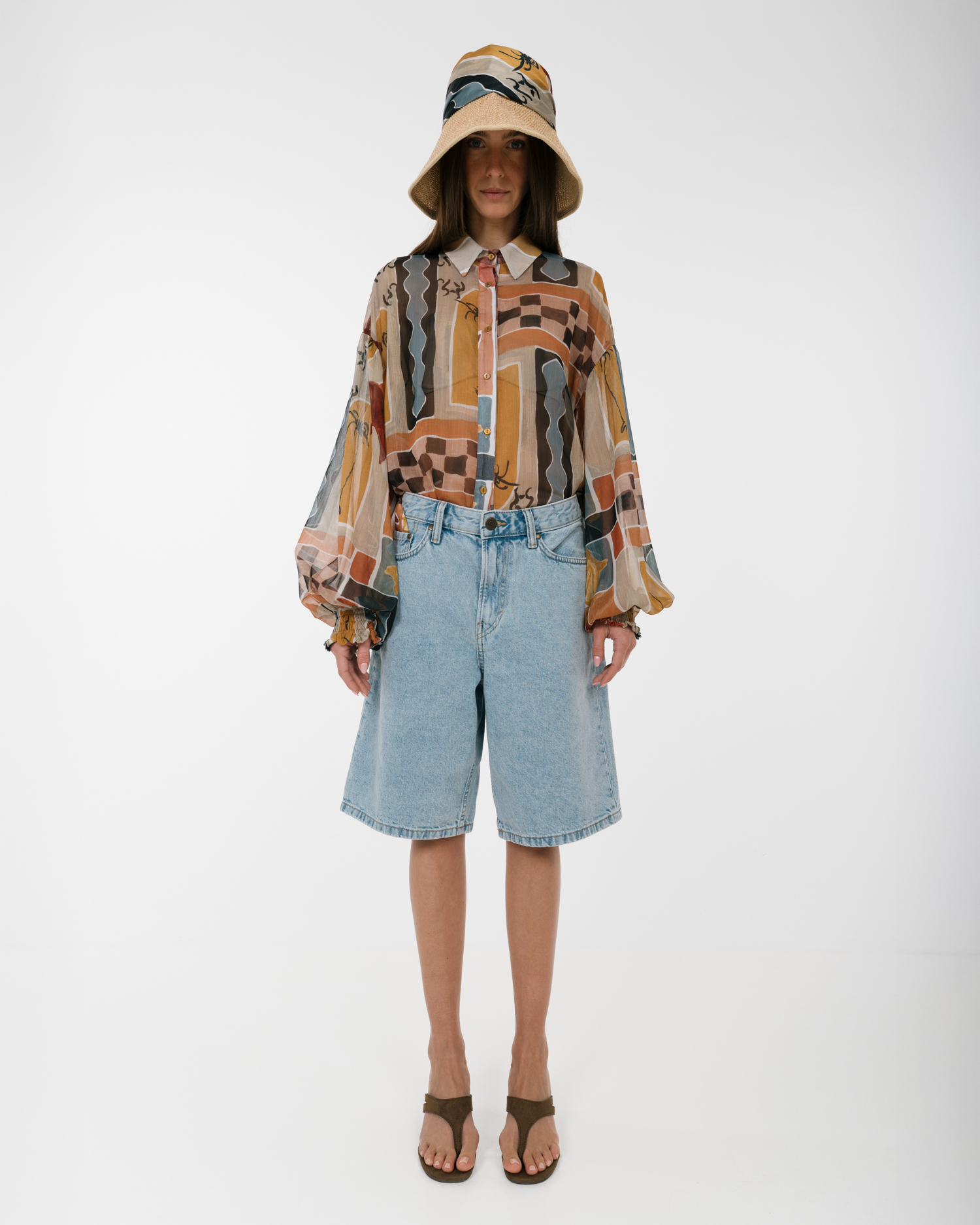 Πουκάμισο τουνίκ με abstract print chase the sun New Eros