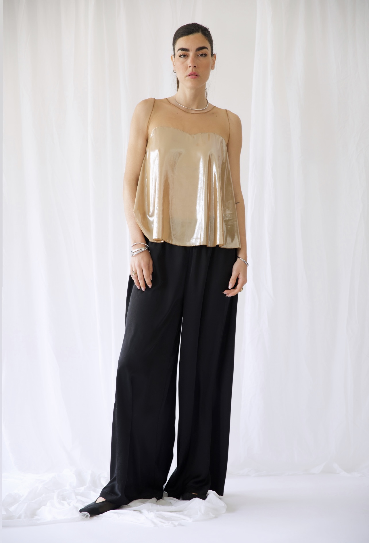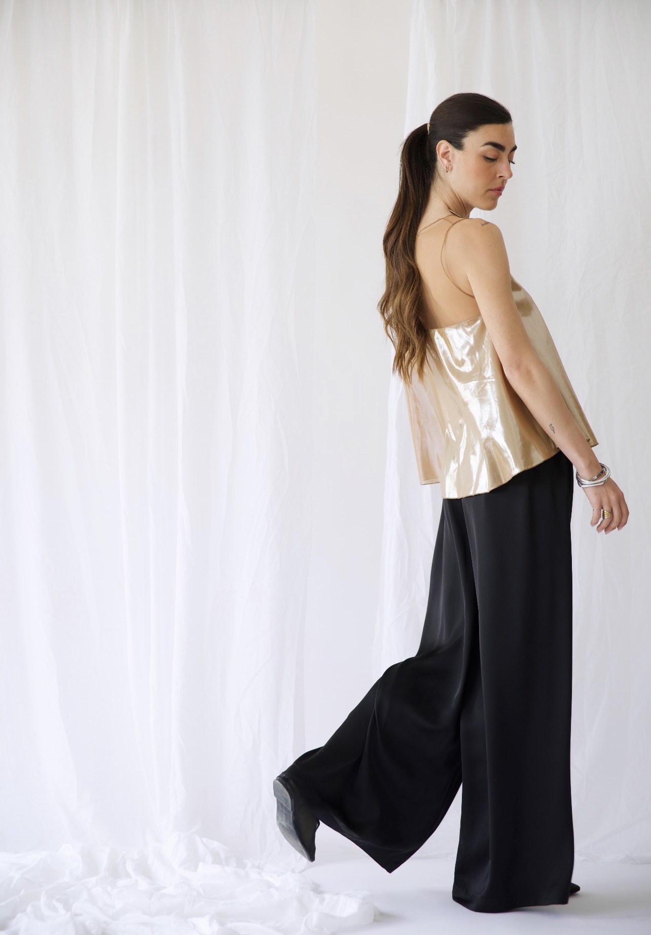 Η μεταξωτή σατέν παντελόνα Rhea στο προχωρημένο και εντυπωσιακό lime φτιάχνεται από πολυτελές ύφασμα και χάρη στη wide leg σιλουέτα θα κολακεύσει κάθε γυναίκα. Όπως επίσης, θα συνδυαστεί εύκολα και γρήγορα με το ασορτί μπλέιζερ Anemοia ή με πολλά από τα κομμάτια που θα βρείτε στην καλοκαιρινή σας γκαρνταρόμπα. Διαχρονική, άνετη και τόσο κομψή ψηλόμεση παντελόνα που φοριέται και πιο χαμηλά, ανάλογα με την προτίμηση και τη διάθεσή μας. ΄Εχει μοναδική υφή και αέρινο look, με το ύφασμα να κινείται υπέροχα στο περπάτημα. Φόρεσέ τη με μια σικ μπλούζα και είσαι έτοιμη! Τα wide leg γυναικεία παντελόνια επέστρεψαν δυναμικά στη μόδα και η παντελόνα αυτή που φτιάχνεται στην Ελλάδα με οικολογική συνείδηση δεν θα περάσει απαρατήρητη.