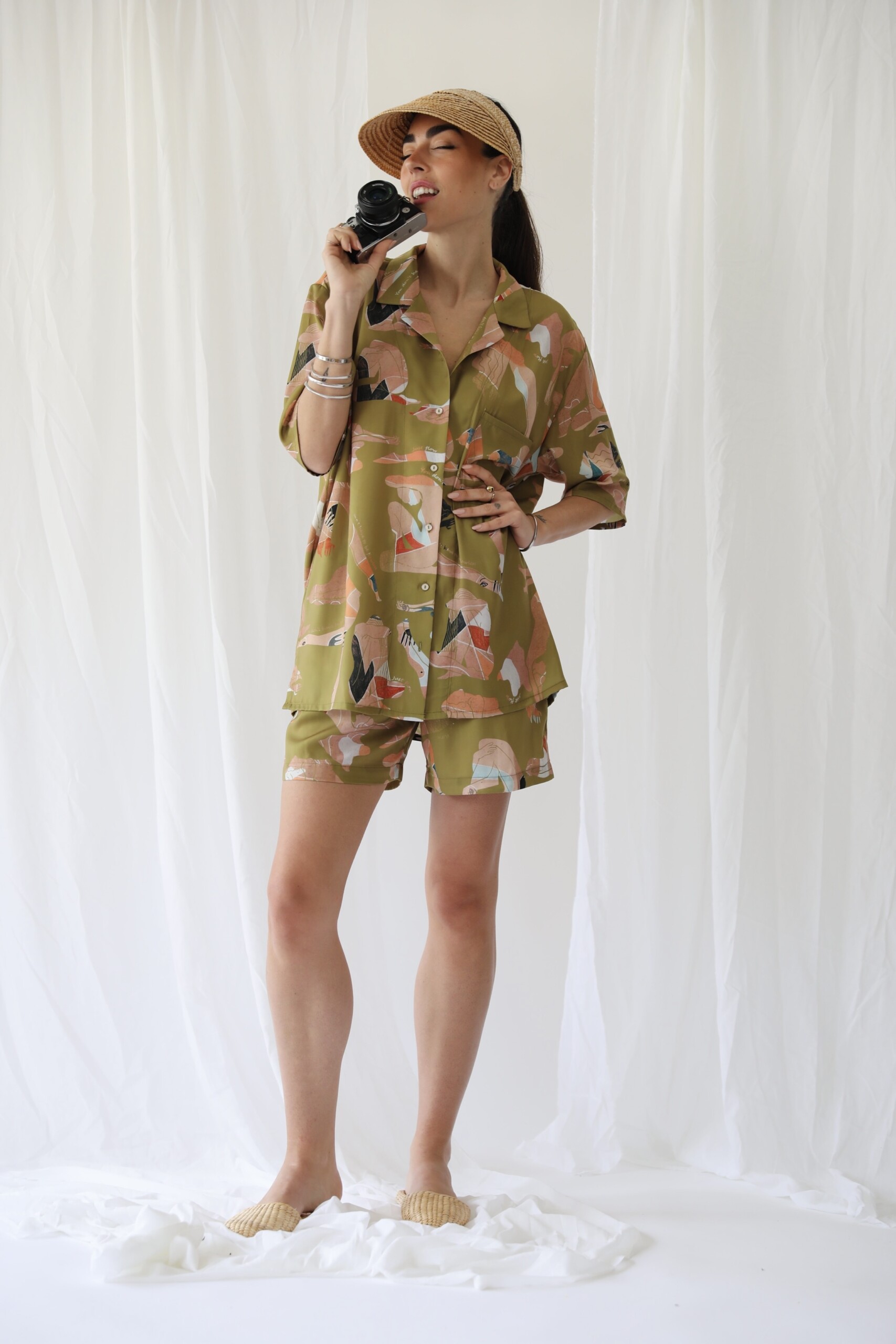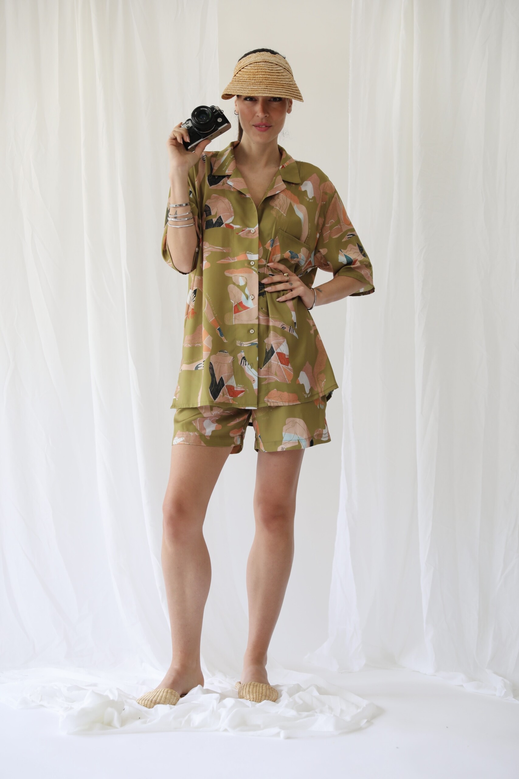 Καλοκαιρινό, φωτεινό και τόσο… cool unisex πουκάμισο με signature print. Ένα oversized κοντομάνικο πουκάμισο που αναβλύζει καλοκαίρι και φτιάχνεται από ελαφρύ, satin ύφασμα. Έχει μία μπροστινή τσέπη, πέτα και κουμπιά και είναι ιδανικό για να το μοιράζεσαι με το αγόρι σου. Δροσερό και άνετο, θα ταιριάξει στο σωματότυπο κάθε γυναίκας και άνδρα. Φορέστε το με το ασορτί γυναικείο σορτς ή το ανδρικό μαγιό. Τα unisex πουκάμισα της συλλογής κατασκευάζονται στην Ελλάδα με eco-friendly φυσικά υφάσματα και με υπευθυνότητα για τον πλανήτη.
