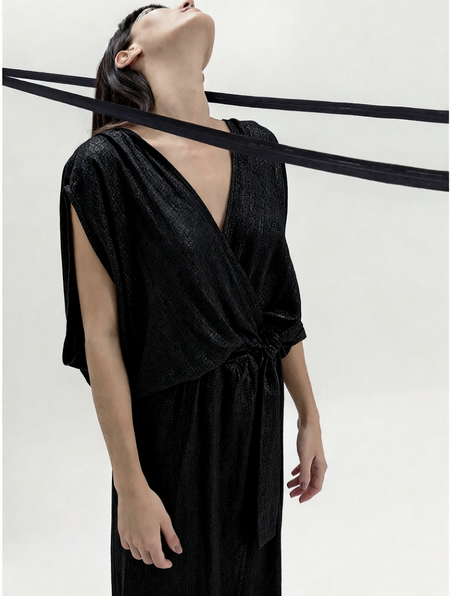 MEROU WRAP DRESS BLACK LUREX