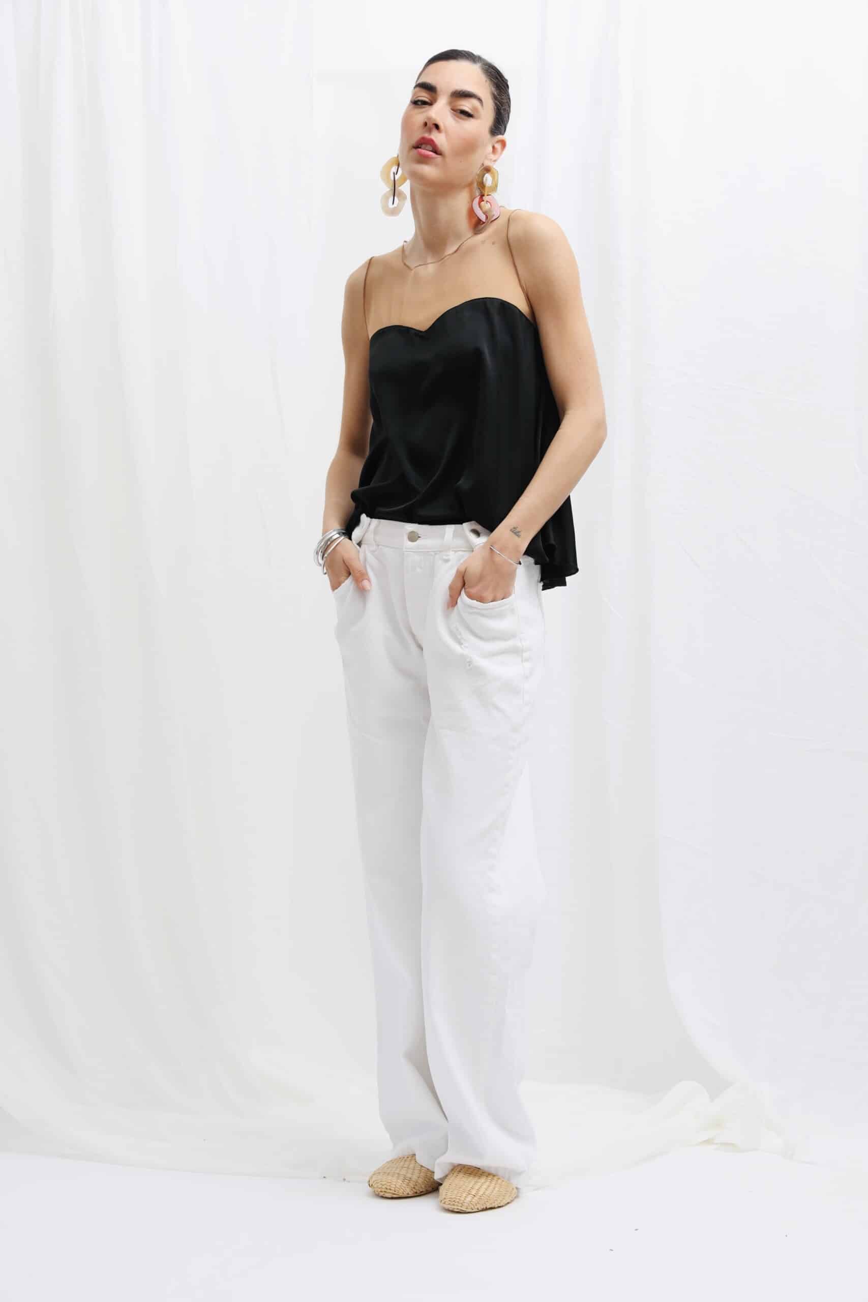 Button patent jeans are a breakthrough to the oversized denim trend. They come with an adjustable waistband that has 2 loops and a button on each side, so they can fit to anybody type from XS to XL. Wear it as high-rise with both button closure or as a low rise with open button sides . Loose and wide-leg women's blue jeans with slant hip pockets! An all convertible slung blue wash denim that stands out. The new age mid rise oversized loose jeans are designed for a slouchy, baggy fit with references to 90's style! They're made from mid weight denim which feels super stable and soft from the first wear and fit throughout the legs. Made in Greece of pure cotton, it's so easy to wear and super comfy. Match it with any top or a T-shirt if you prefer.