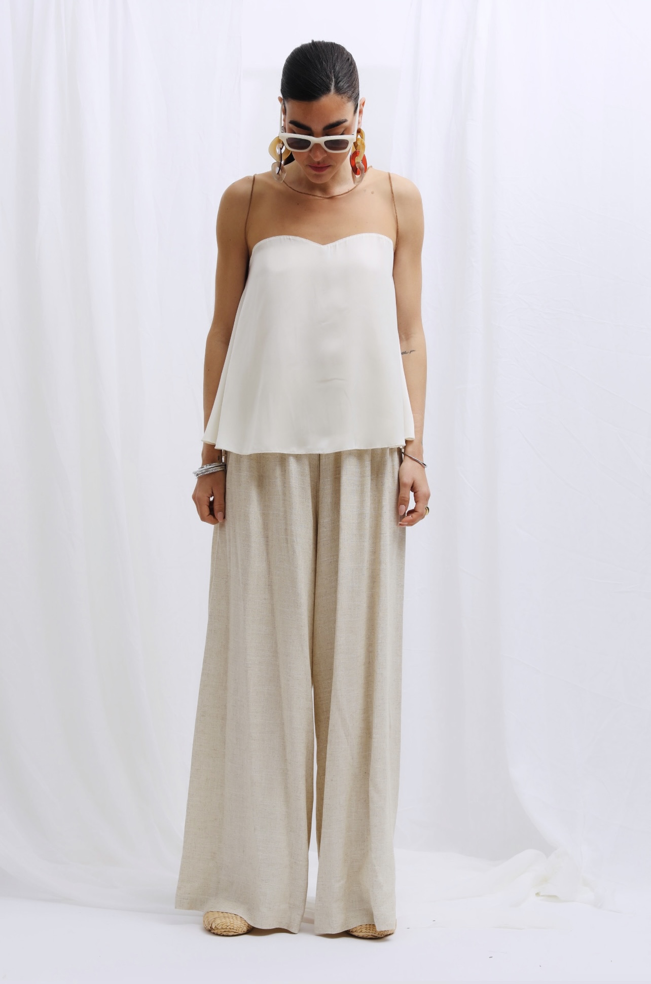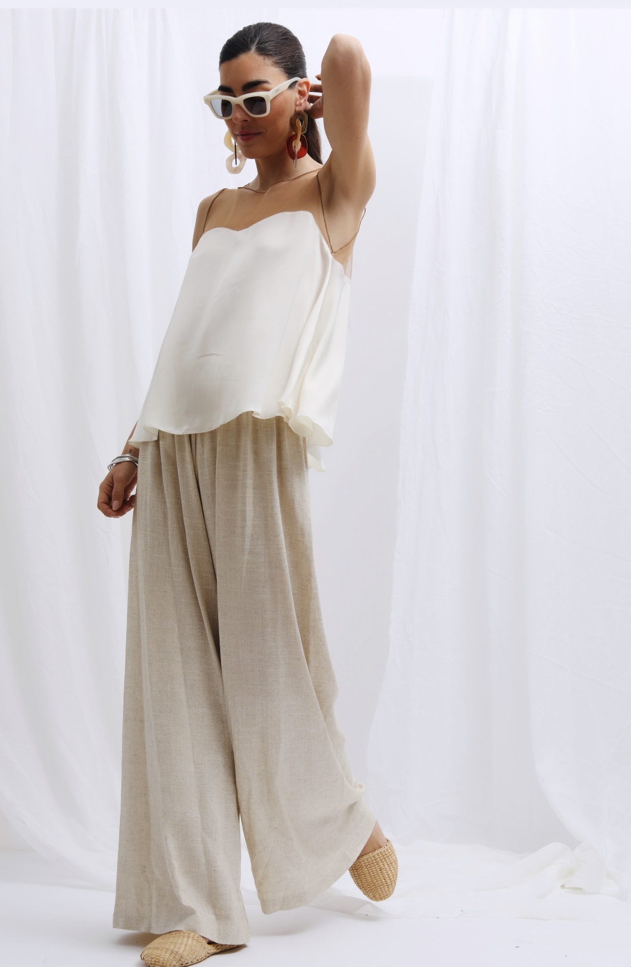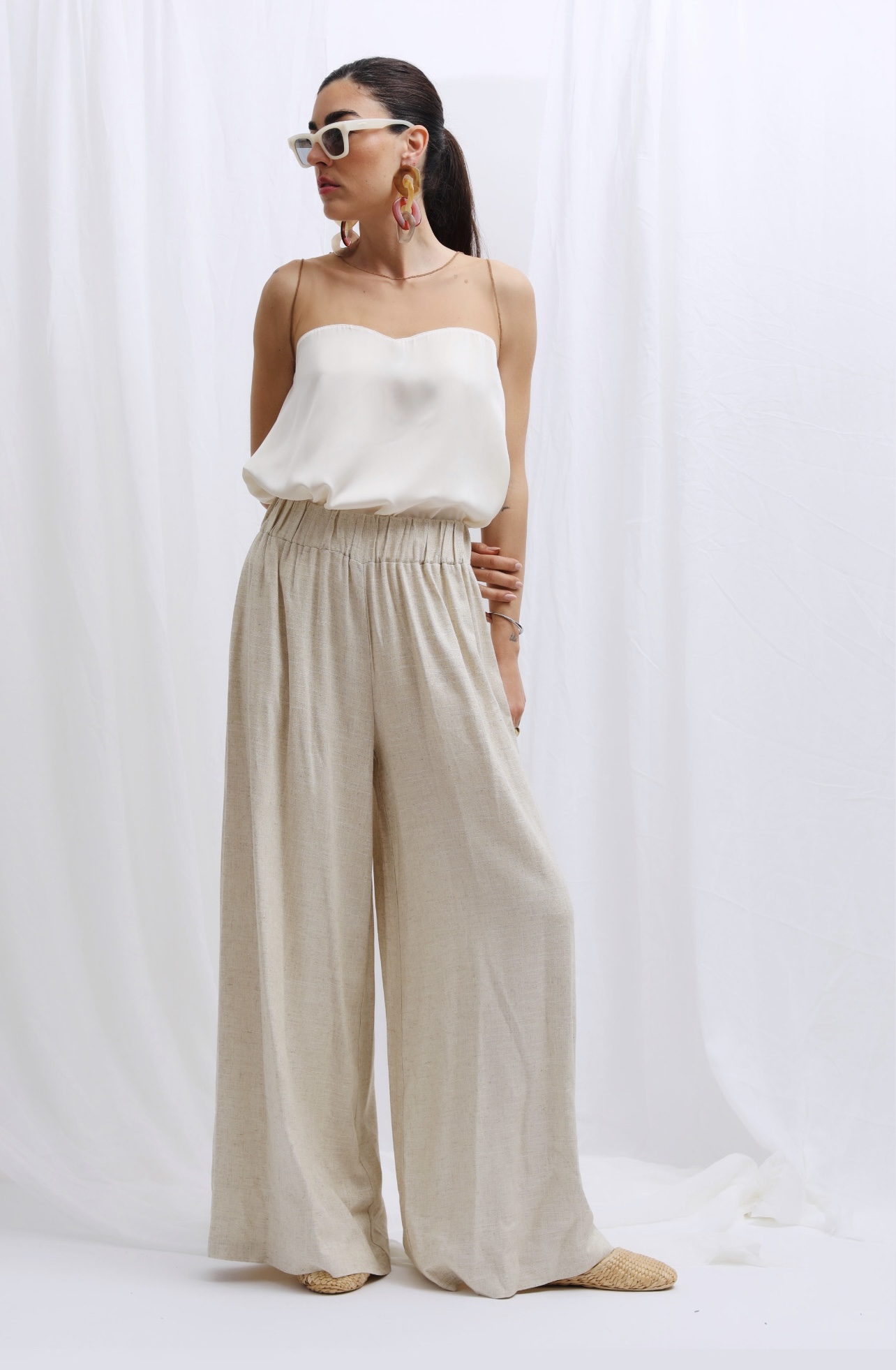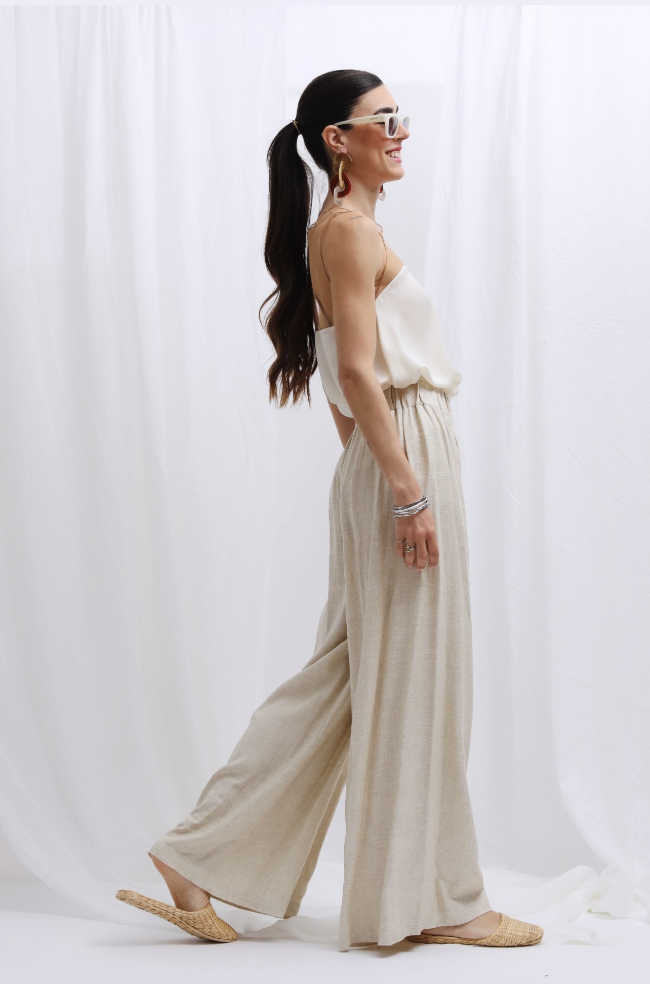 RHEA LINEN WIDE LEG PANTS NATURAL
