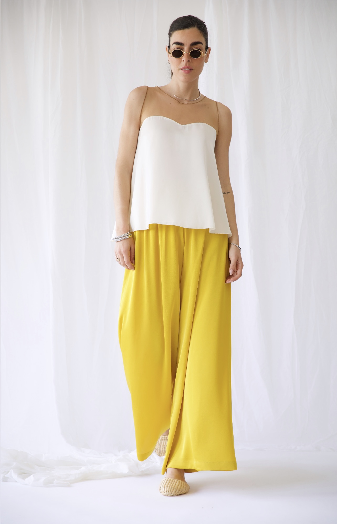 RHEA SILK SATIN WIDE LEG PANTS YELLOW
