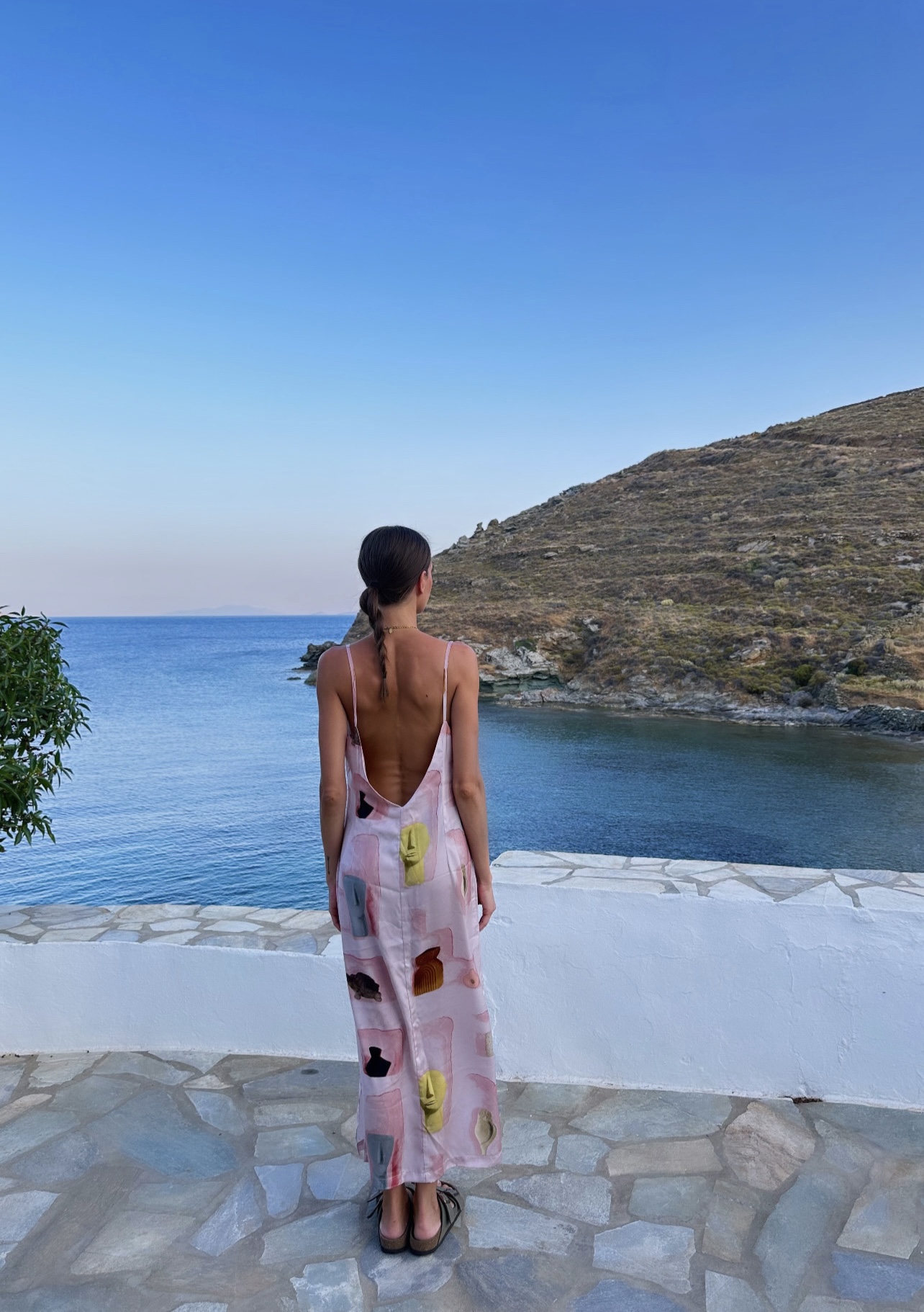 RETREAT SILKY MIDI DRESS PINK WALL ART